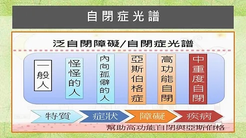 自閉症為腦功能障礙,各個嚴重度不同。因此,接受孩子可能有的障礙,儘量協助他們學習適應環境,並將目標設定在讓兒童和家長有愉快的生活經驗,對於這些孩子會有極大幫助。