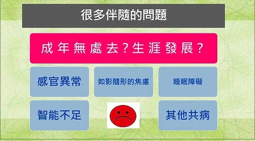 最新國外研究報告,個案於2-5歲接受正確積極的介入,90%兒童可以發展出語言且在智力測驗評估上有顯著改善。早期診斷早期接受矯治對自閉症患者非常重要。然自閉症成人合併有情緒障礙的比例亦有六、七成之多。
